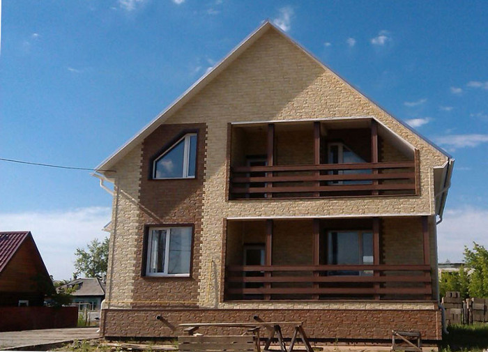 Наружная отделка дома фасадными панелями – доступная по цене альтернатива облицовке стен природным камнем или декоративной плиткой. Такой фасад даже с близкого расстояния ничем не отличается от натурального, весит намного меньше, поэтому не требует усиленных несущих конструкций и фундамента, и стоит в разы дешевле.