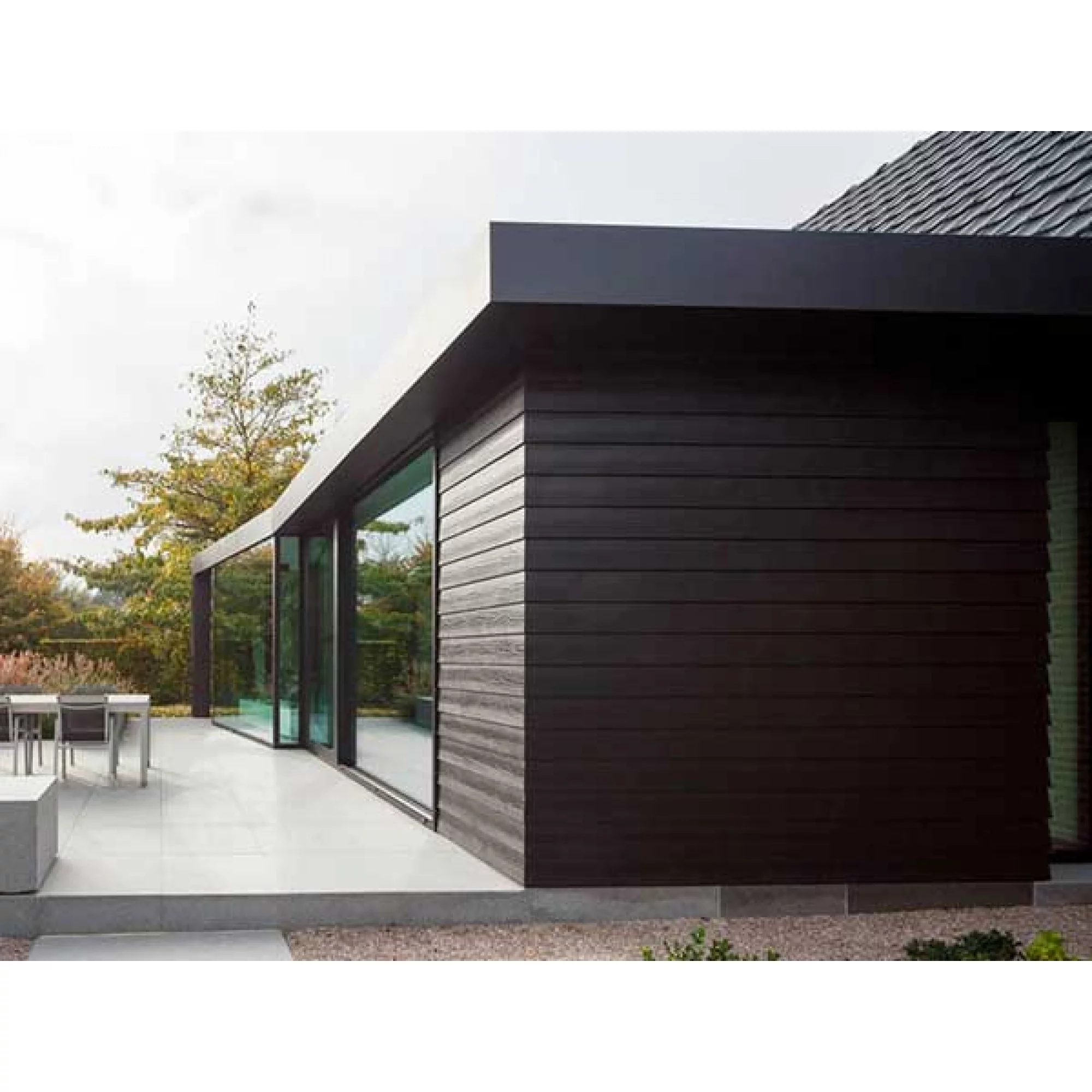 Внешняя поверхность идентична текстуре благородных древесных пород, что делает фиброцементный сайдинг клик отличным решением для оформления зданий любого типа: